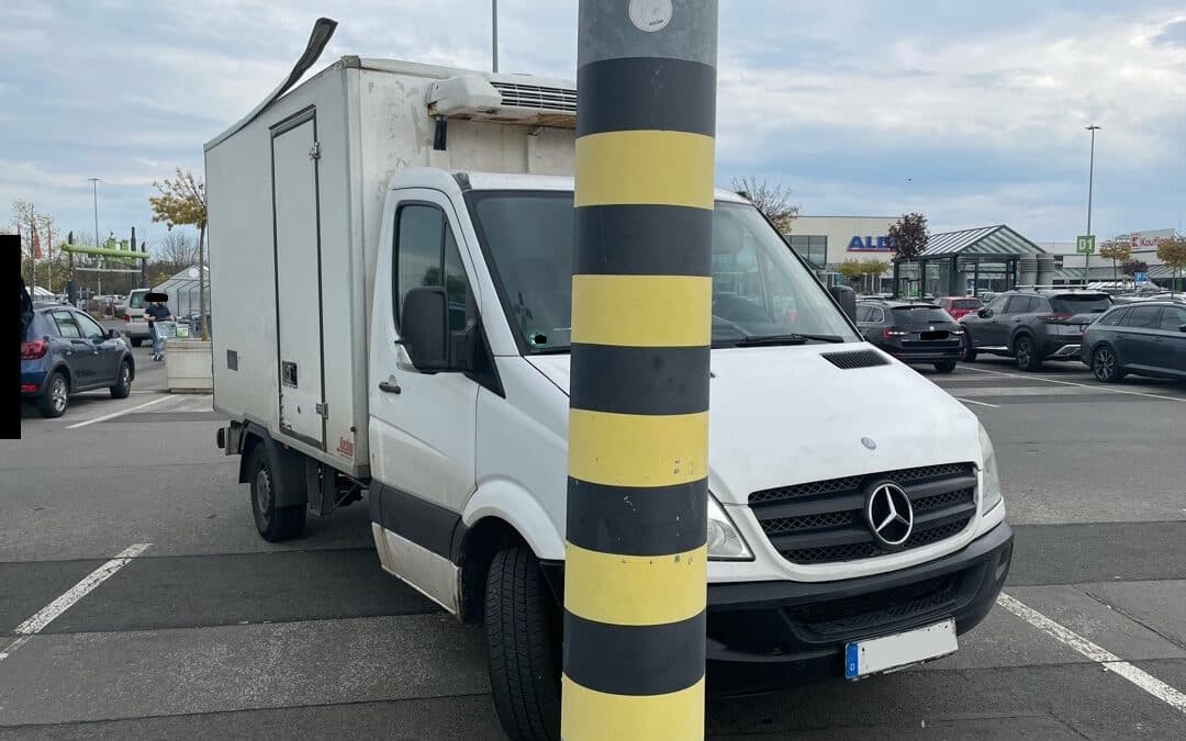 Am Nachmittag des 18.04.2026 gegen 14:45 Uhr verschätzte sich der 34jährige Fahrer eines Mercedes Benz Klein-Lkw bei den Abmessungen seines Gefährtes. Er befuhr zu Lieferzwecken den Parkplatz eines Einkaufszentrums im Erfurter Süden. Hierbei verkalkulierte er sich bei der Durchfahrtshöhe von 2,50m und touchierte den Balken der Höhenbegrenzung. Dadurch wurde die Konstruktion der Höhenbeschränkung im Fundament beschädigt und kippte leicht zur Seite. Die Durchfahrt unter dem Bogen ist aus Sicherheitsgründen vorerst gesperrt. Aufgrund von Größe und Gewicht der Konstruktion und damit einhergehendem erheblichen Reparaturaufwand wird der Schaden auf ca. 10.000 Euro geschätzt. Das Fahrzeug wurde am Dach beschädigt, der Schaden beträgt ca. 500 Euro. (MF)