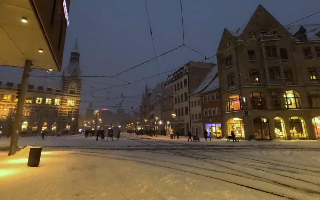 Die Stadt ist voll mit Menschen, die von A nach B wollen. Der Schnee bremst sie. Die Straßenbahnen fahren auf den ersten Blick zügig durch die Stadt, aber irgendwo hakt es. An den Haltestellen gibt es Durchsagen, die auf witterungsbedingte Behinderung hinweisen. Vor der Unterführung am Hauptbahnhof stauen sich die ersten Bahnen.